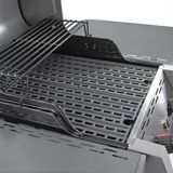 The grill uses 4 powerful and durable stainless steel burners strategically placed in the grill for even heat distribution.