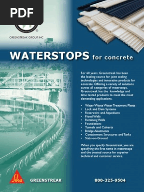 Sika greenstreak waterstops concrete accessories pvc waterstops must be securely positioned in the forms to prevent deflection or misalignment during concrete placement.