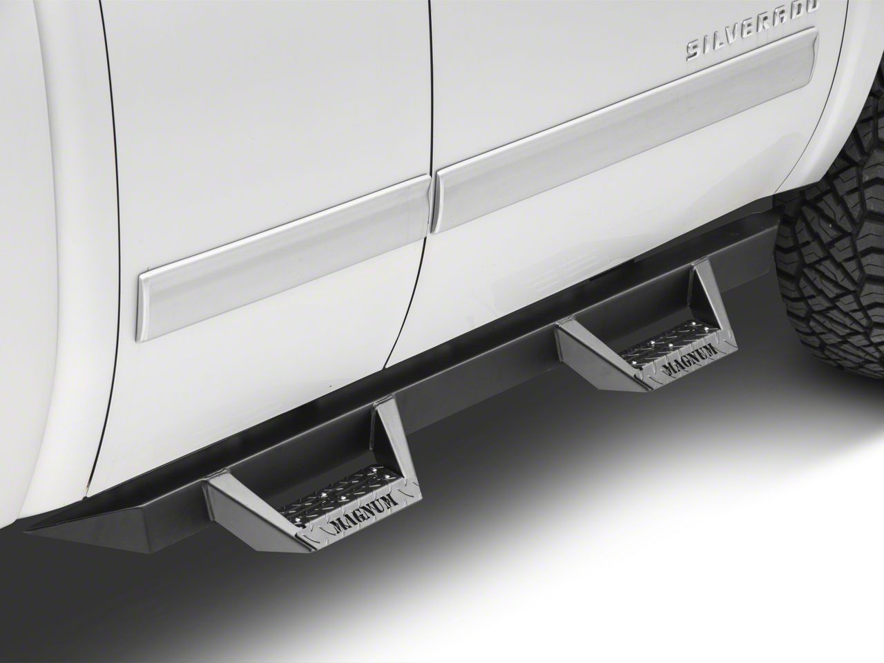 If you want to dial the toughness up to 11 ici s magnum rt steps will never steel you wrong. That s why magnum truck gear offers a limited lifetime warranty with the rt side steps. The steps do not seat flush up to the bottom of the truck. Matte black and powder coated these steps are made from 10 gauge cold rolled steel.